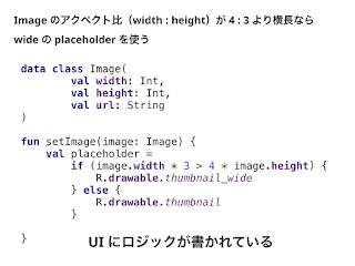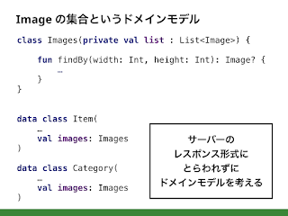 JSON의 형식을 일단 잊어두고 “표시 영역의 크기에 따라 적절한 Image를 선택하는 로직”은 누구의 책임인가를 생각합시다.